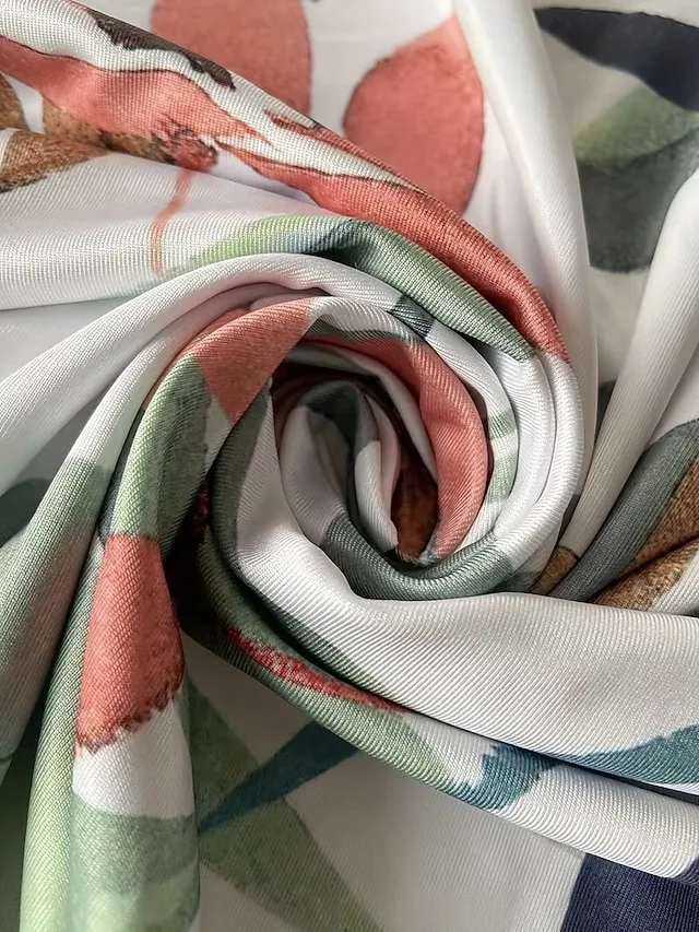 Elegante satijnen hemdkleed met kunstzinnig print en losse snit. Perfect voor vakantie en vrije tijd – ontdek het nu.