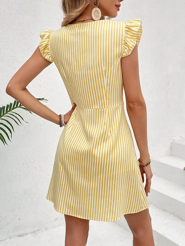 Casual gestreept minikleed in A-lijn met V-hals en korte mouwen. Ontdek nu de moderne dagelijkse look.