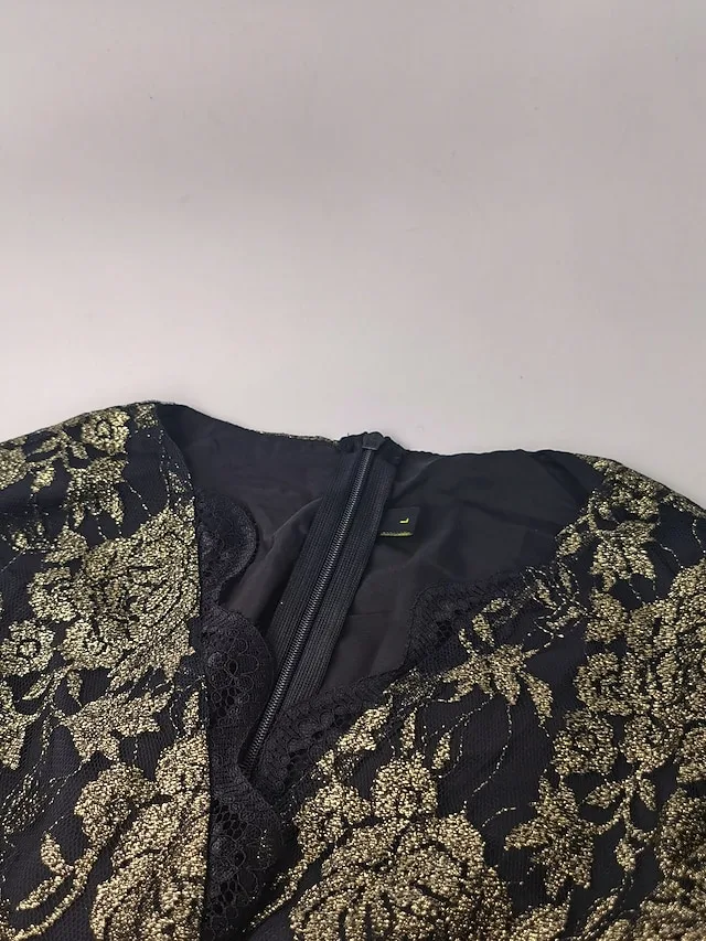 Deze zwarte midi-jurk combineert verfijnde elegantie met een vrouwelijke, moderne uitstraling. De fijne kantlook en de flatterende V-hals geven de look een stijlvolle lichtheid voor speciale gelegenheden.