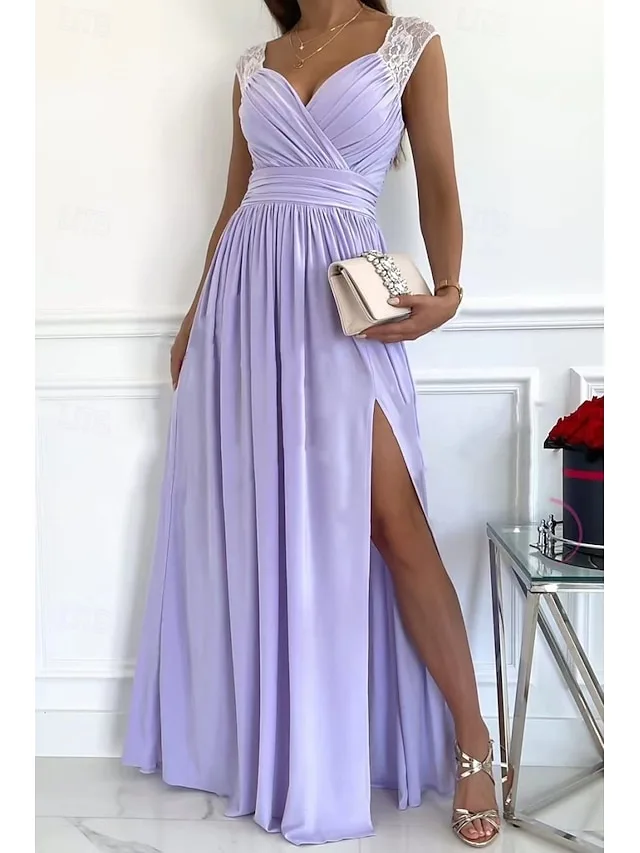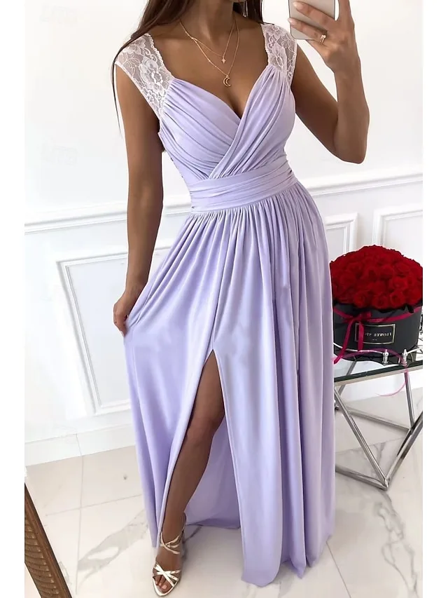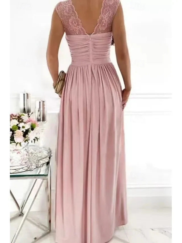 Dit elegante maxikleed verenigt moderne verfijning met een vloeiende silhouet voor een stijlvolle verschijning bij speciale gelegenheden. Het geraffineerde ontwerp en de flatterende V-hals accentueren de vrouwelijke vormen en geven de look een chique uitstraling.