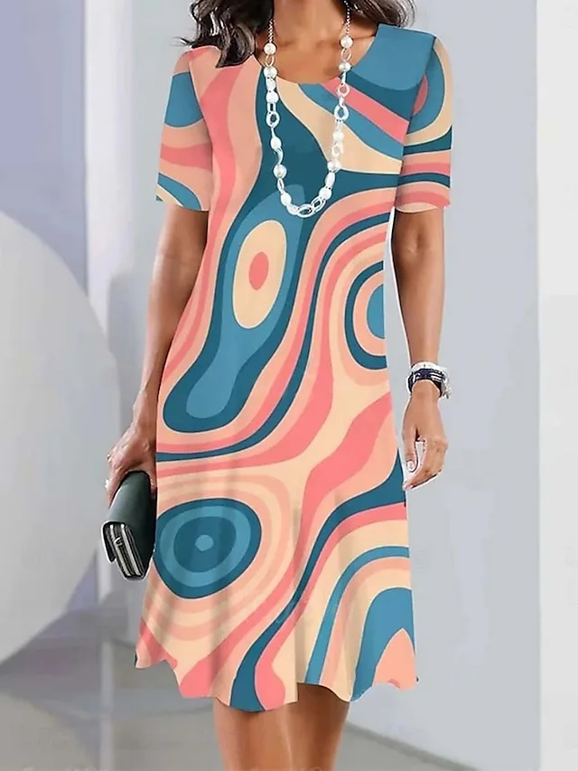 Deze elegante midi-jurk combineert een vrouwelijke silhouet met een modern grafisch patroon voor een stijlvolle uitstraling in het dagelijks leven en bij speciale gelegenheden. De klassieke ronde hals en de comfortabele regular fit zorgen voor een zelfverzekerd, licht draaggevoel met een luxueuze uitstraling.