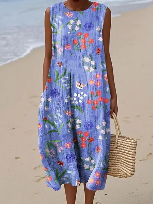 Lässig Lockere Grafik Rundhals Ärmellos Midi Jurk