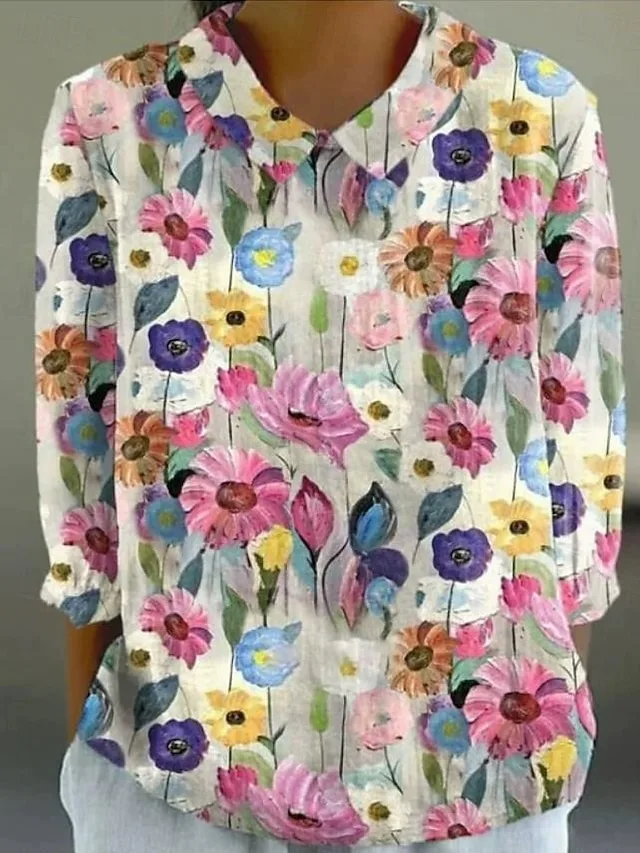 Lässig Lockere Grafische V-Hals Lange Mouw Midi Jurk