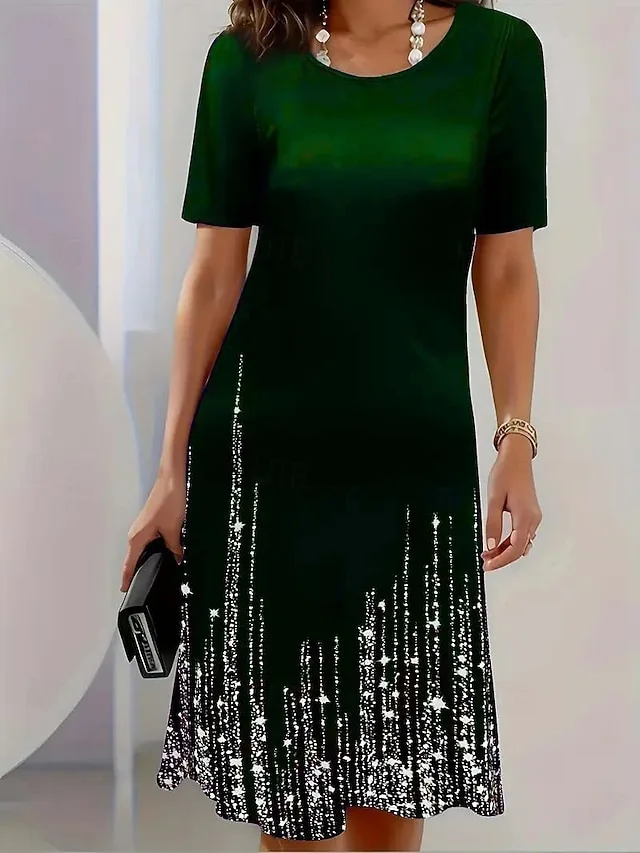 Lässig Normale Pasvorm Abstracte Bloemen Ronde Hals Korte Mouw Midi-jurk