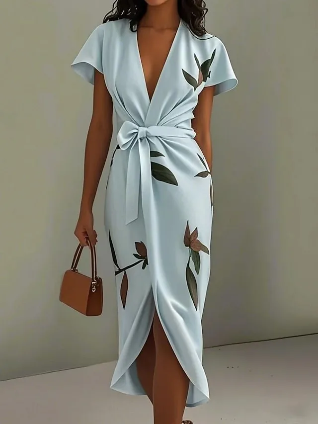Een vrouwelijke midi-jurk die moeiteloze lichtheid combineert met een elegante uitstraling. De delicate bloemenprint en de flatterende V-hals geven de look een stijlvolle, zomerse uitstraling.