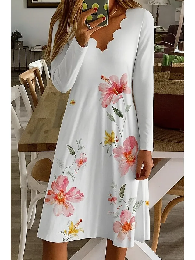 Lässig Normale Pasvorm Bloemen V-hals Korte Mouw Minikleed