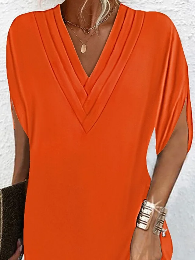 - Mouwen: Korte mouw, vleermuismouwen